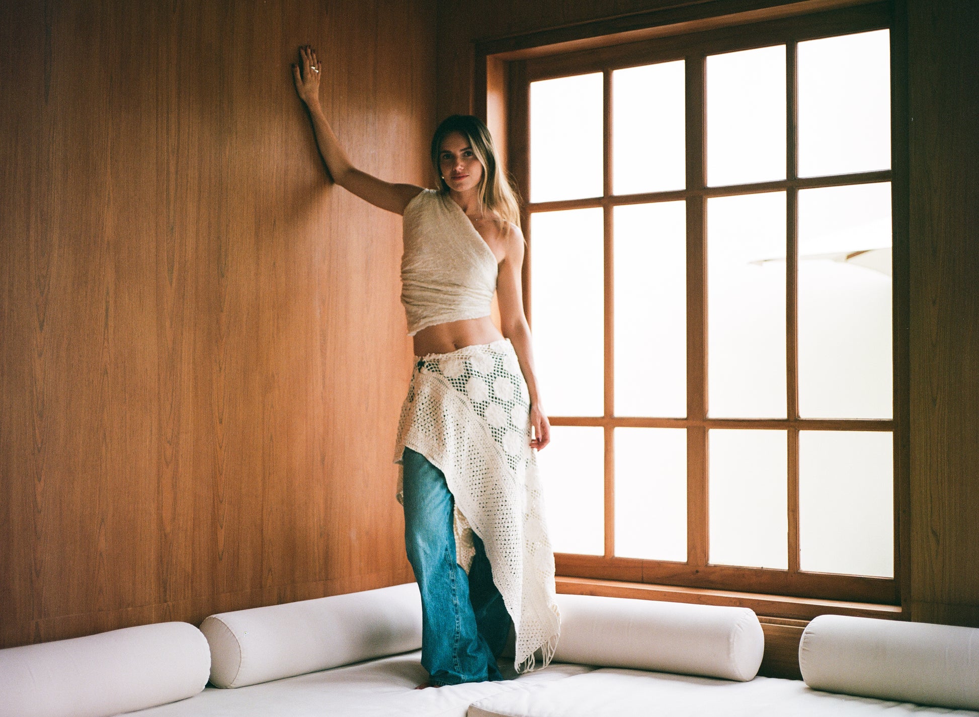 Soft, versatile, and effortlessly chic. This cream-colored knitted skirt can be styled in multiple ways wear it as a skirt, wrap, scarf, or as a lightweight cover-up over swimwear or jeans.