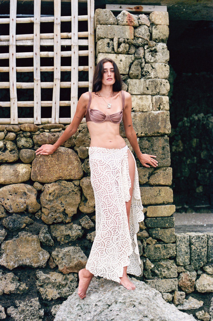 This knitted piece effortlessly transforms into a skirt. a scarf, a wrap, or a stylish overlay for swimwear or jeans. Made in Bali