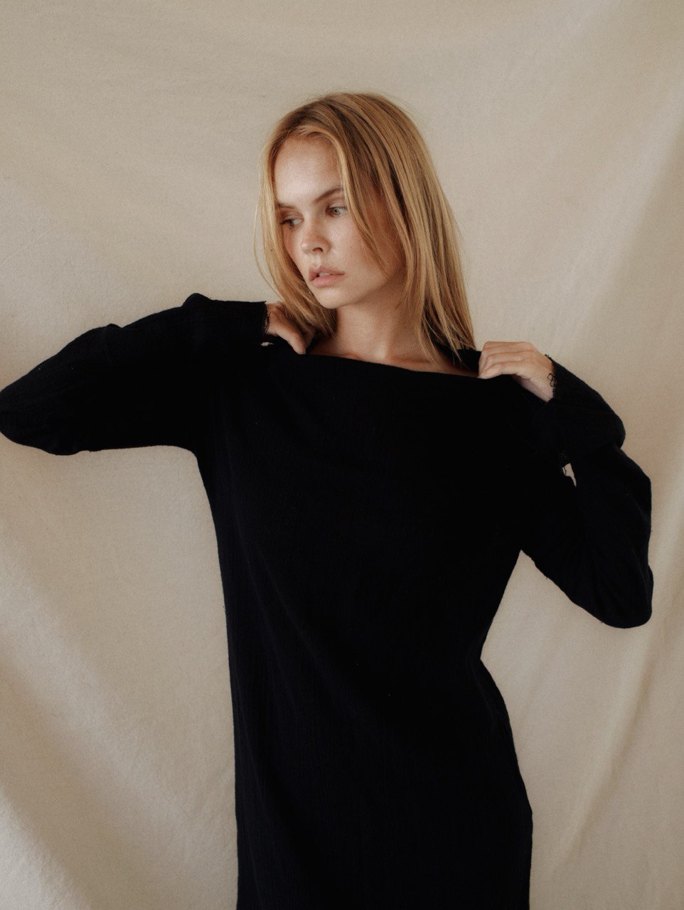 Unleash your inner goth with our Long Cotton Dress. This striking black maxi dress is the perfect blend of elegance and edge, making it a standout piece in any wardrobe. Crafted from 100% cotton sourced from small factories in Indonesia, it’s designed for those who love to embrace the dark and mysterious.