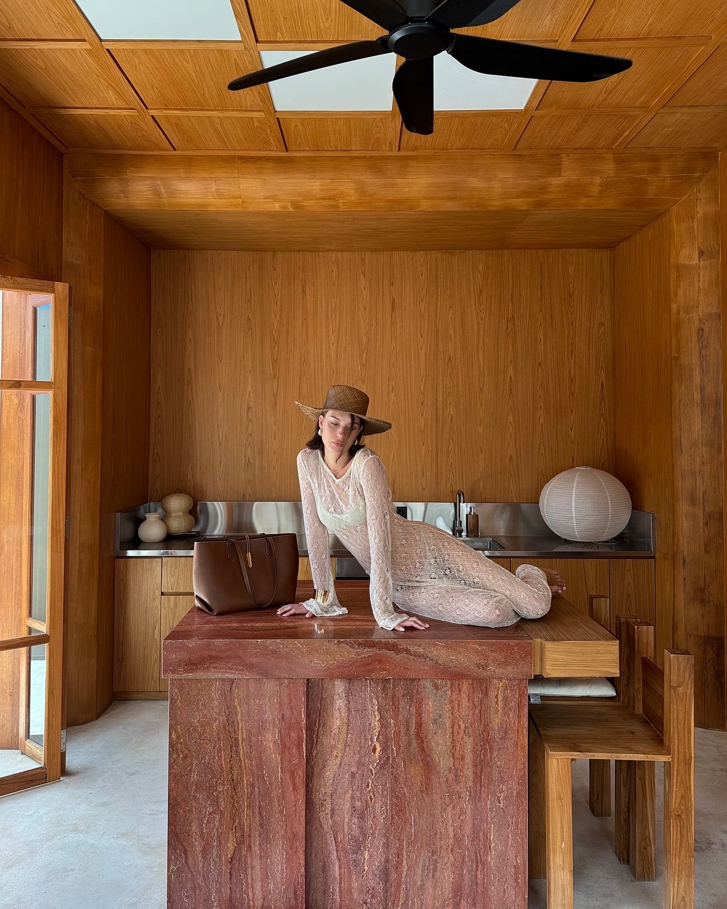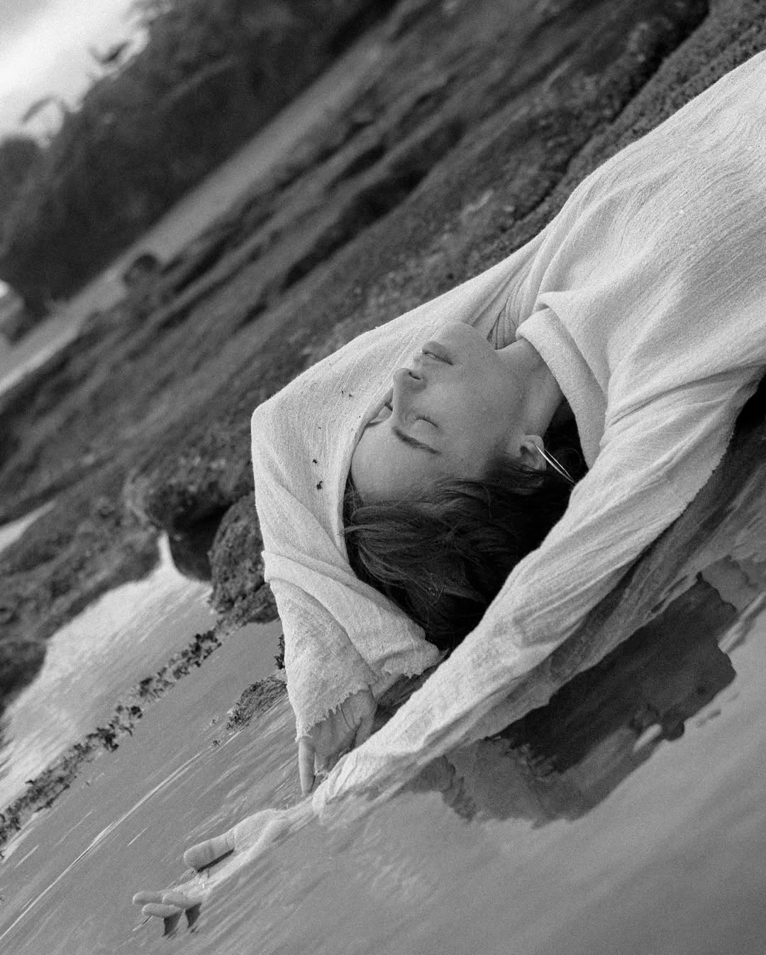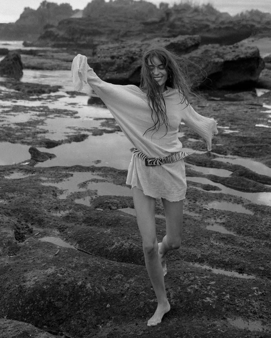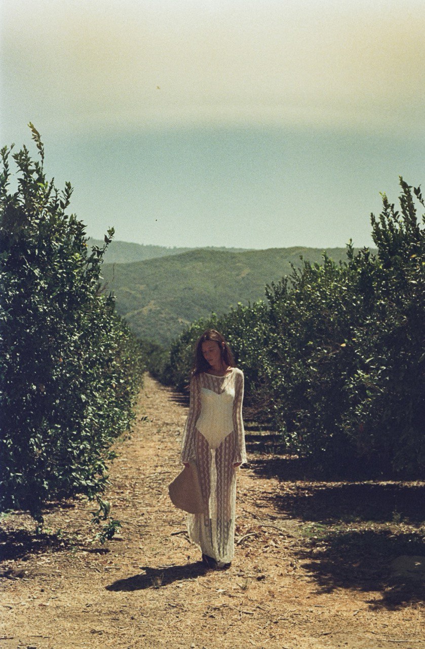 This transparent dress is crafted from various lace pieces that change each season. It can be worn over a swimsuit or opaque underwear. Made in Bali