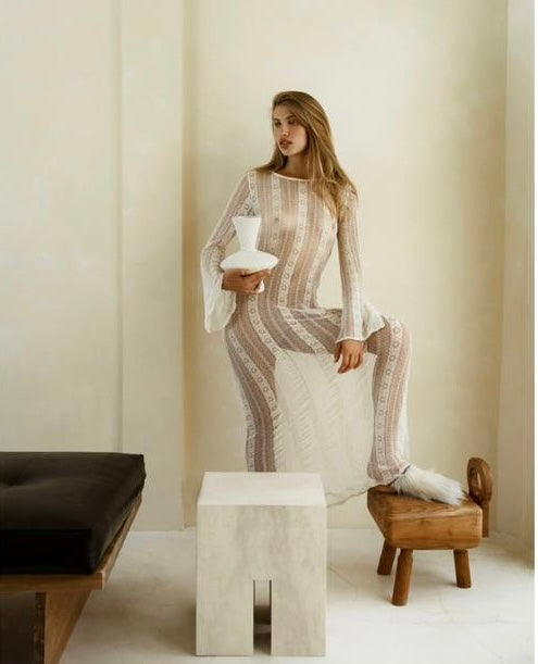 Naked lace dress in cream