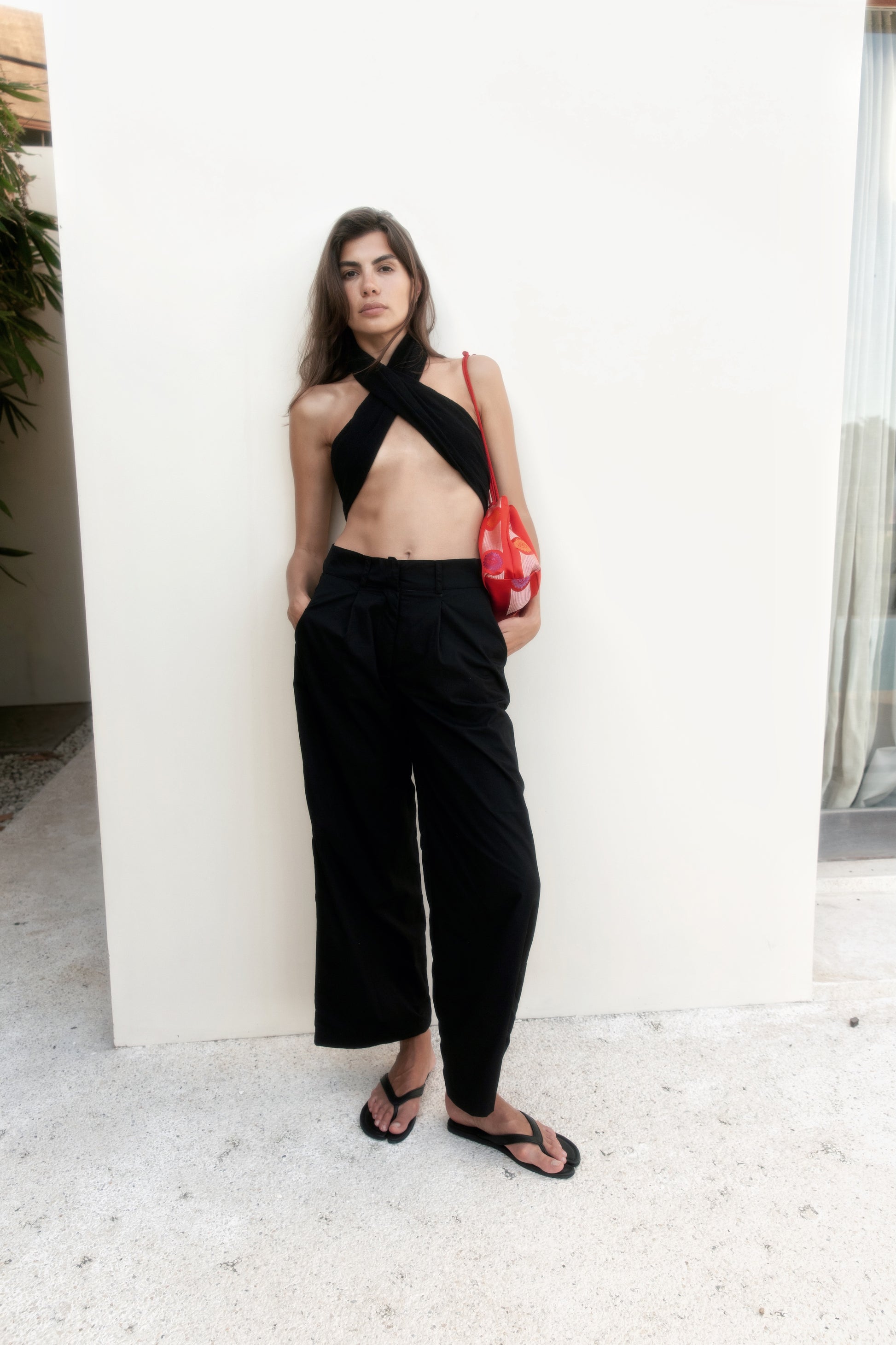 This minimalist black triangle top is crafted from high-quality Javana cotton, known for its lightweight, breathable, and soft texture. Designed with clean lines and a flattering silhouette, the top features adjustable ties for a customizable fit, making it ideal for layering or wearing on its own. The natural texture of the Javana fabric adds a subtle, organic feel, while the deep black hue lends a bold and versatile edge. Perfect for warm-weather styling, this cotton piece combines comfort with understated elegance.